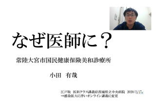 新型コロナウイルス感染拡大に伴い5月15日(金)に、本校卒業生の小田 有哉 先生(常陸大宮市国民健康保険美和診療所)によるオンライン講義を行いました。